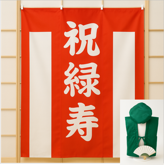 またオプションでお祝いの会を盛り上げるための緑寿祝い用紅白幕も用意しました。