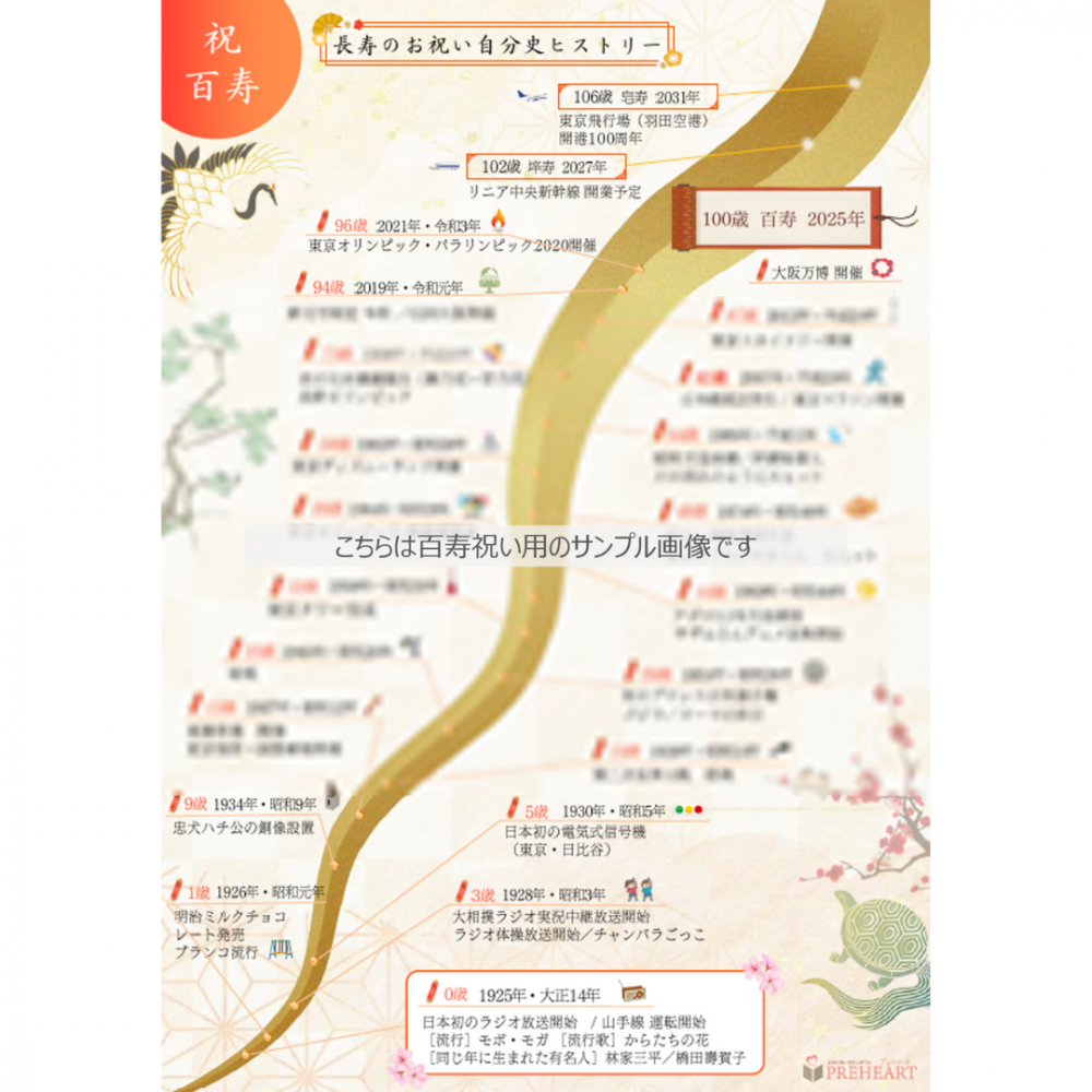 還暦の方がどのような年に生まれ、何歳の時にどのようなイベント、環境を過ごしてきたのかを感じることで還暦のお祝いを一層感じることができます。これまでプレハートをご注文いただいた方への特典としてサプライズでのご提供を行ってきましたが、多くのお客様からご好評をいただき、受け取った長寿の方からは、「一生の記念にする」といった声も多く頂きました。また、このアイテムがあったことでお祝い会が賑やかに、華やかになった、盛り上がったとの声もたくさん頂きました。そのため、お客様の声に応え、デザインを整え商品化をいたしました。