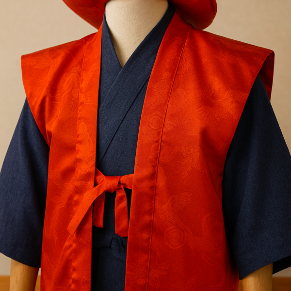 還暦のお祝いにご利用いただける高級感ある赤色のちゃんちゃんこです。