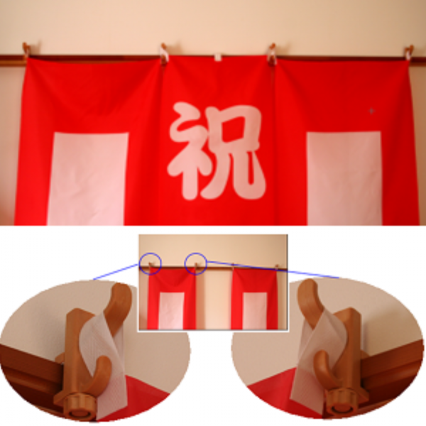 文字幕 1枚 ・ 紅白幕 2枚、設置用器具2種類、取付説明書