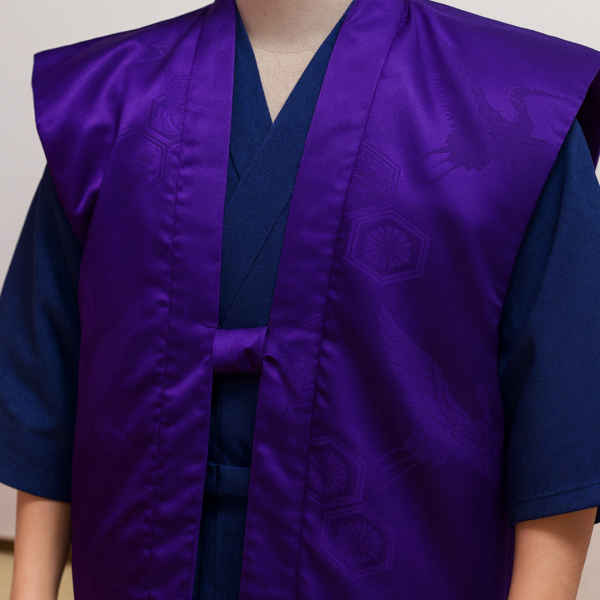 喜寿のお祝いにご利用いただける高級感ある紫色のちゃんちゃんこです。