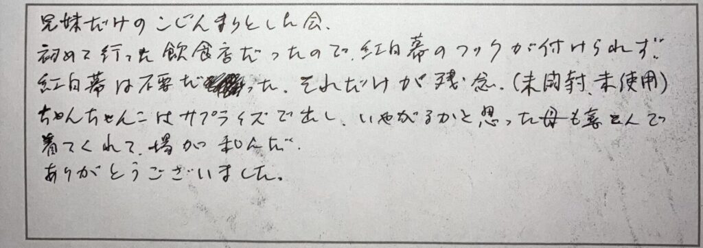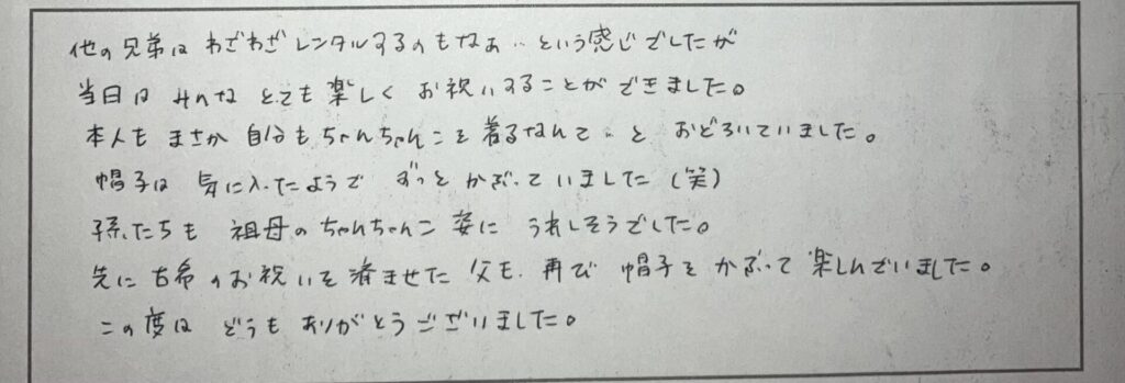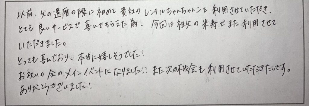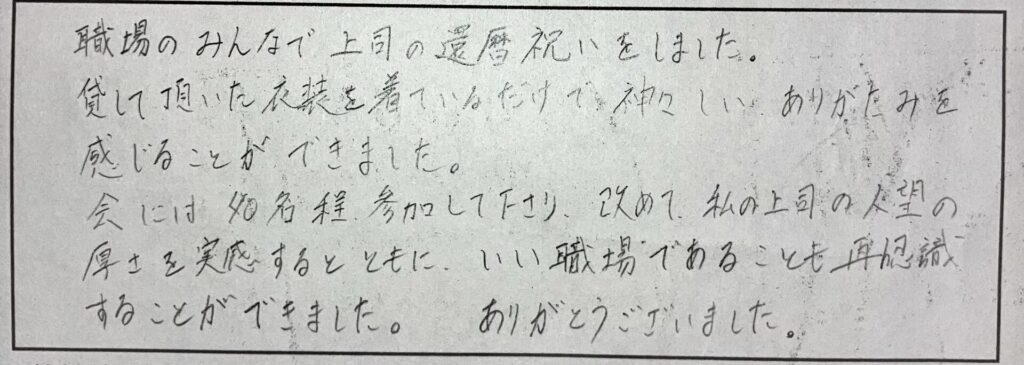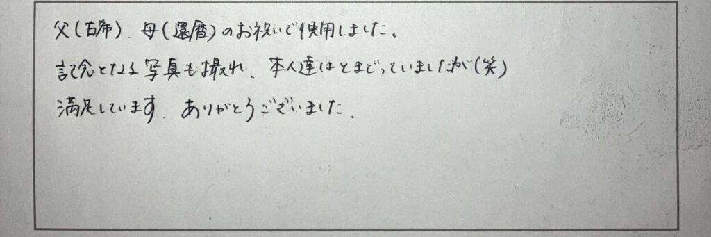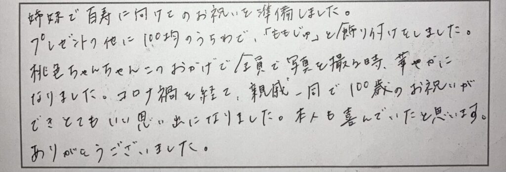ひとことで長寿の祝いといってもそれぞれのドラマがあります。お客様に感謝のかぎりです。